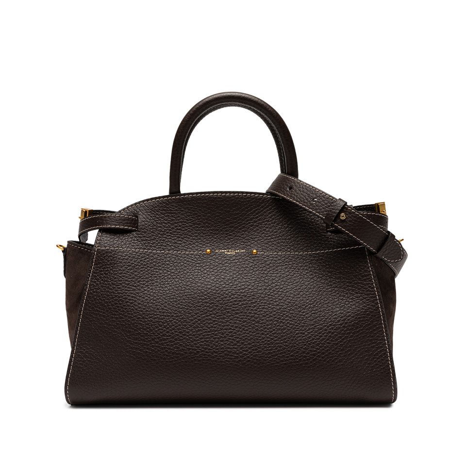 Farah by Gianni Chiarini Firenze è realizzata in pelle grana maxi, arricchita da fianchi esterni in suede tono su tono. Caratterizzata da una forma trapezoidale, presenta dettagli iconici che ne esaltano il design. Arricchita da un cinturino esterno e da una chiusura in metallo, per un tocco contemporaneo e unico. Dotata di due manici superiori in pelle e di una tracolla removibile, può essere indossata anche crossbody. Dimensioni: 39x27x19 cm